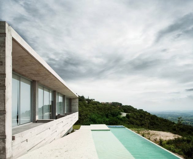 The Widescreen House is a contemporary dwelling perched on the side of a hill in Jiutepec, Mexico. It was designed by Mexican practice R Zero Studio with a minimalist contemporary design that features exposed concrete. The home opens up to the endless horizon, providing spectacular views from its sunbathed interiors and the beautiful infinity pool outside.