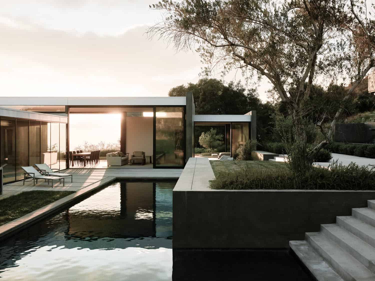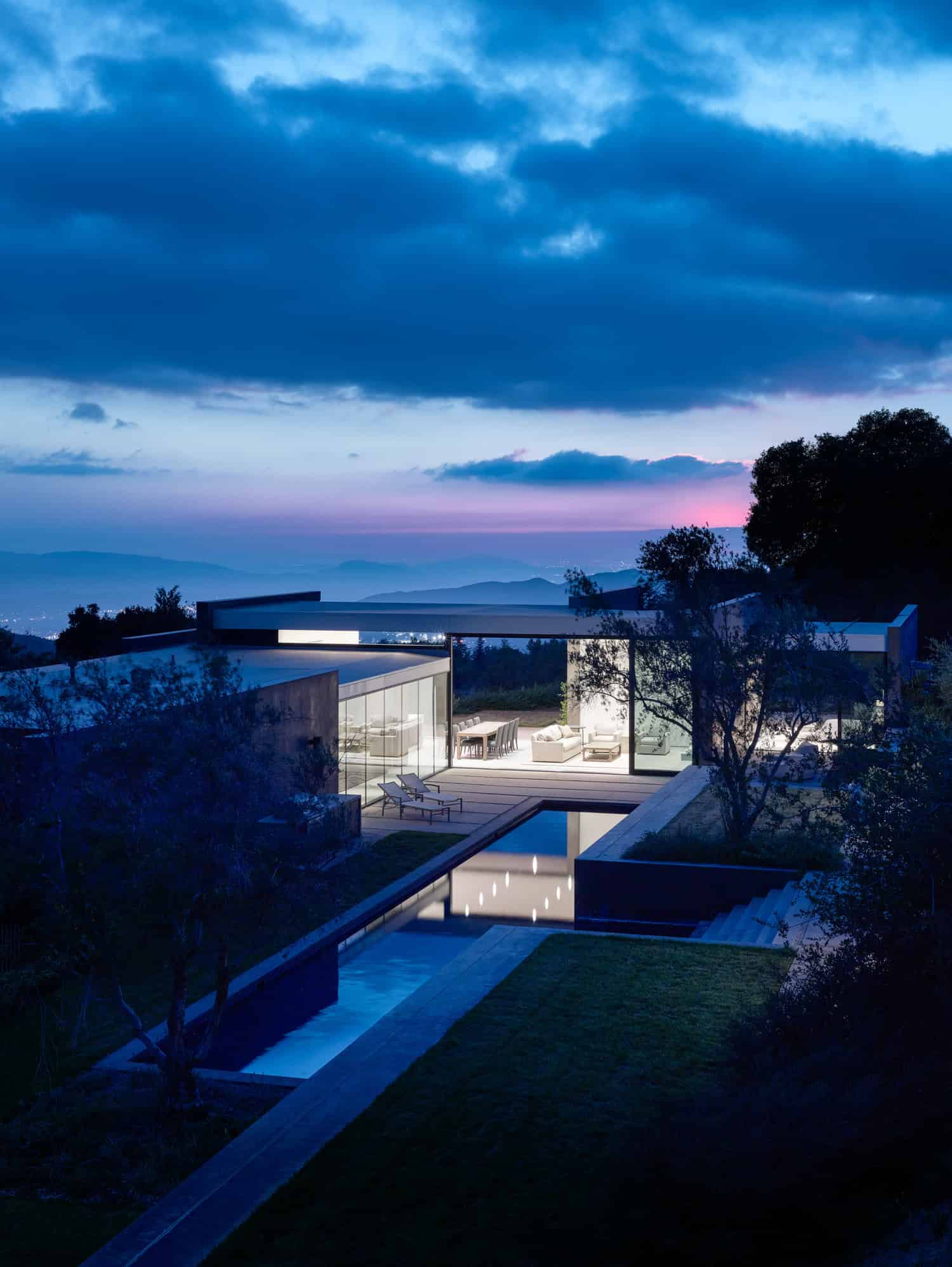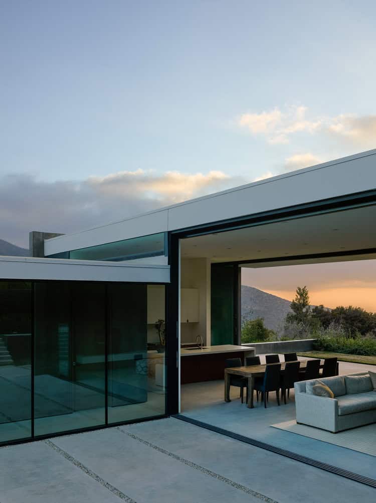 The single story residence enjoys wonderful views all around and that is one of the reasons it is mostly covered in glazed surfaces that do not obstruct the panoramas.