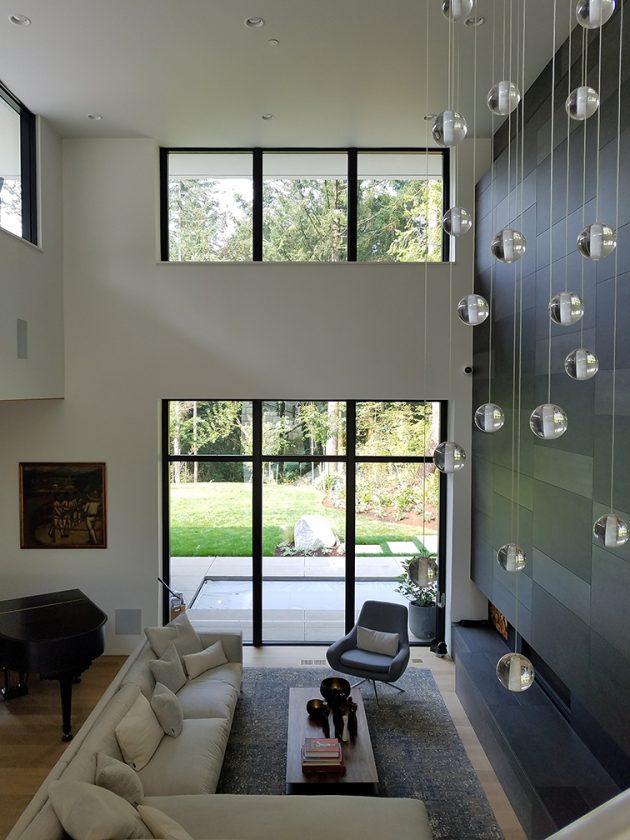 The clients requested a modern home with simple, clean lines to fit within the heavily forested 1.2-acre site and to embrace outdoor living throughout the year.  They requested the home to be truly livable in the cool northwest climate with natural daylight and filtered views of the forest.