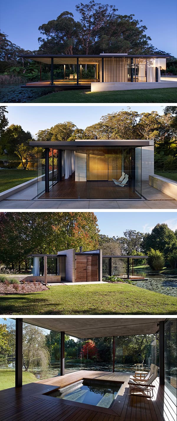 The Wirra Willa Pavilion is a glass pavilion house designed by Matthew Woodward Architecture to celebrate its landscape. The architects have went even further to make sure that this residence will make the most of its surroundings by placing a cantilevered patio directly over a private and peaceful pond, therefore, embedding the home in its environment.