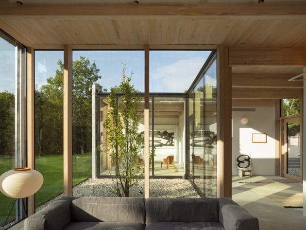 Designed by Jerome Engelkingthe Wuehrer House is a stunning contemporary single-story residence in Amagansett, New York. It’s 2,500 square feet of space are layered out on a single level with all of the interior areas having direct access to the natural sight of their outdoor surroundings through an abundance of glazed surfaces that also shower the interior in natural light.