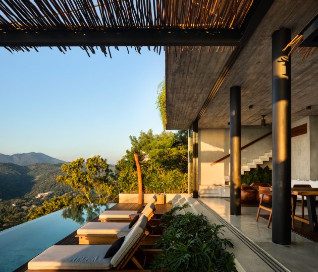Z House occupies a steep ocean-facing parcel in Zihuatanejo where jungle meets rock and the sound of surf is constant. Rather than impose a singular object, Zozaya Arquitectos staged a sequence of open-air rooms, terraces, and water planes that cascade with the topography. The result is a house that feels inevitable on the site—cut from the cliff, tempered by wind and salt, and tuned to daily cycles of sun and shade.
