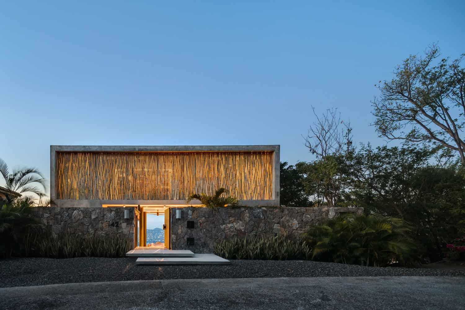 Use honest, resilient materials (cast concrete, local stone, parota timber) that age well on the coast.