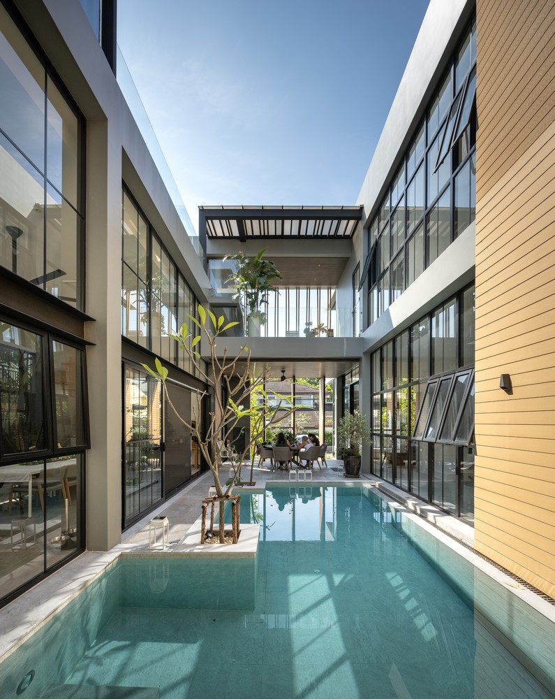 With a central courtyard pool, tall ceilings, and an open yet enclosed plan, the residence embodies the studio’s guiding principle: “open but close.”
