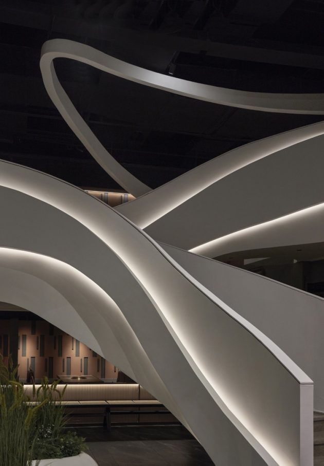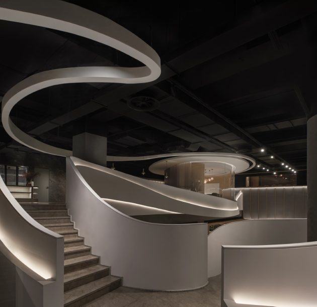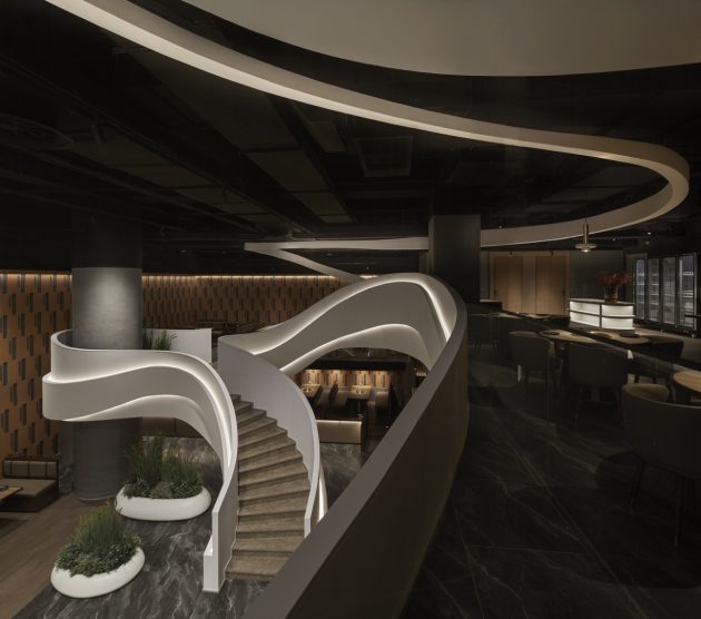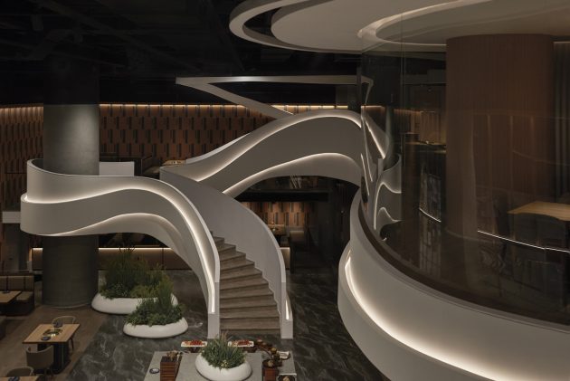 Zhongmeishan self-service BBQ PLUS exemplifies FUNUN LAB’s approach to hospitality design: merging aesthetics with commercial logic. By combining macro-level sculptural gestures (the staircase, spatial zoning) with micro-level detailing (textures, lighting, furniture placement), the design achieves both spectacle and subtlety.