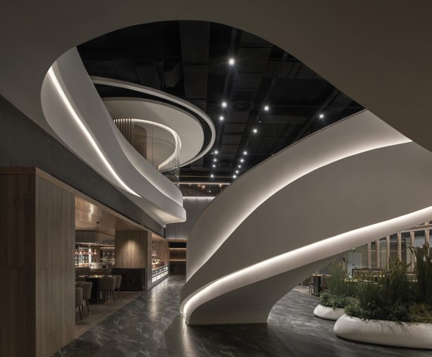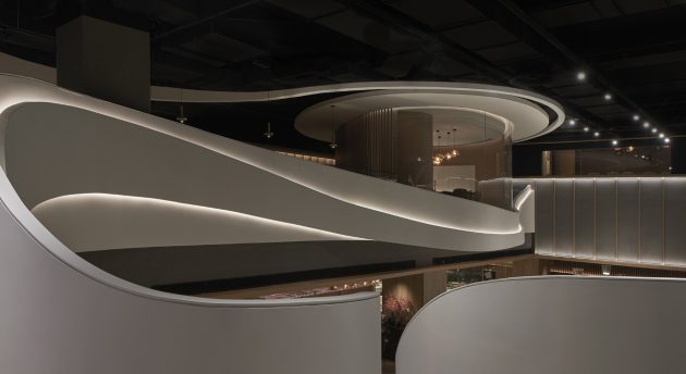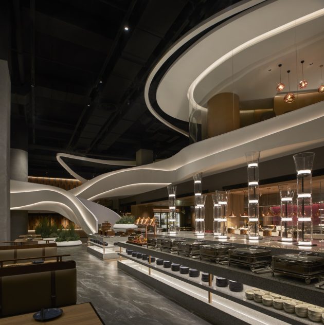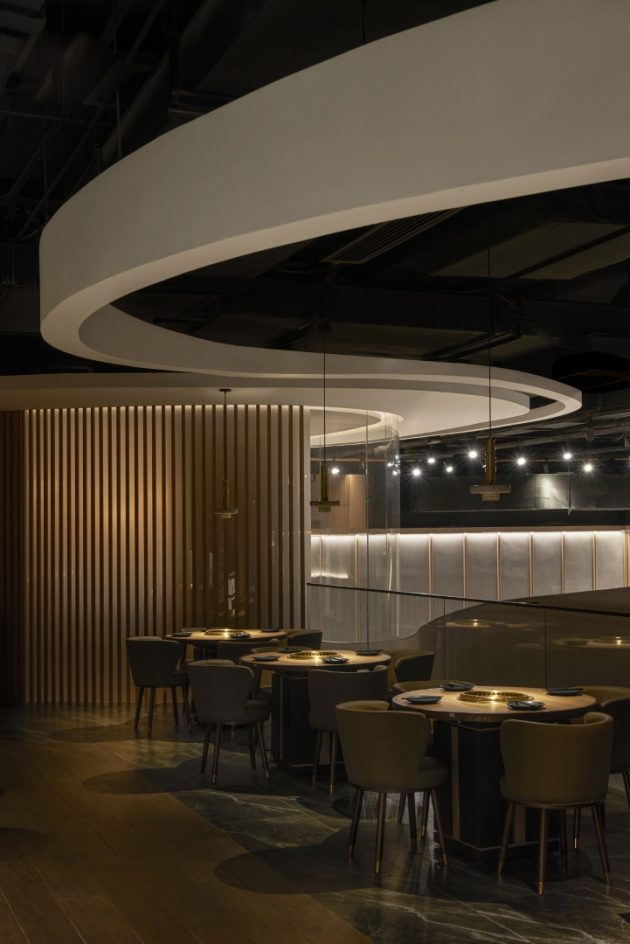 FUNUN LAB’s challenge was to transform a large, square floor plate into a space with rich detail, rhythm, and atmosphere. Through the interplay of geometry, curves, and light, the designers crafted an environment where dining transcends the meal and becomes an immersive experience.